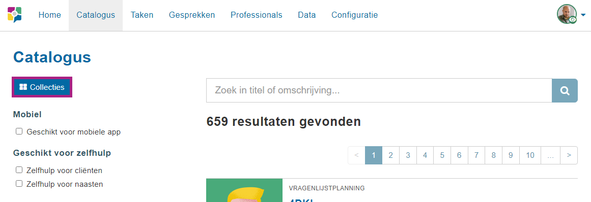 Om het voor je hulpverleners wat makkelijker te maken kun je Collecties samenstellen. Collecties zijn een groep van tools en interventies die kan worden afgestemd op de manier van werken binnen jullie organisatie.